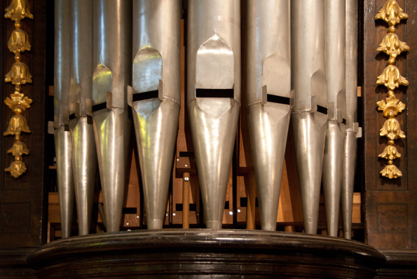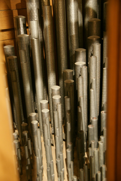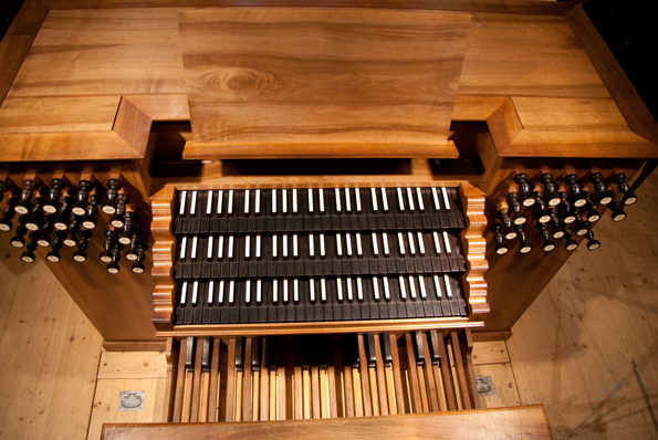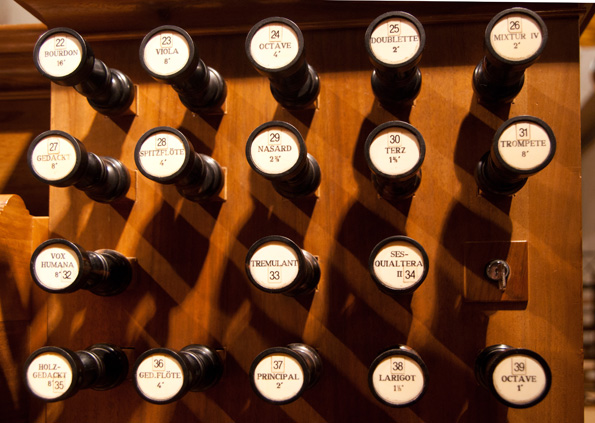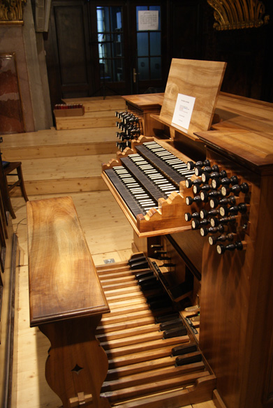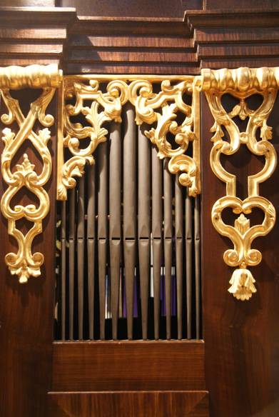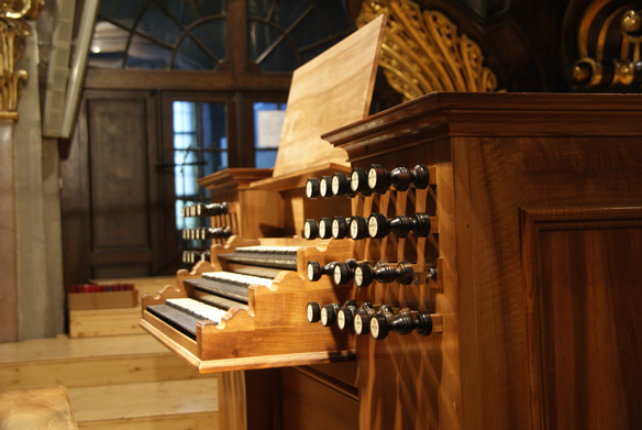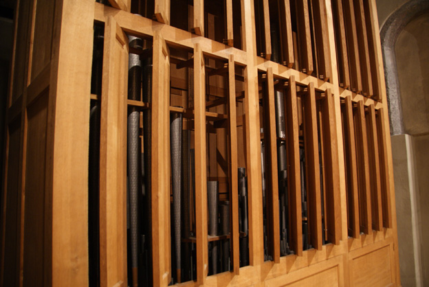 Hauptwerk und Positiv befinden sich im großen Brüstungsgehäuse, für das Schwellwerk (3. Manual) wurde ein eigenes Gehäuse an der Emporenrückwand positioniert. Die Pfeifen des Pedals stehen in den beiden seitlichen Türmen.